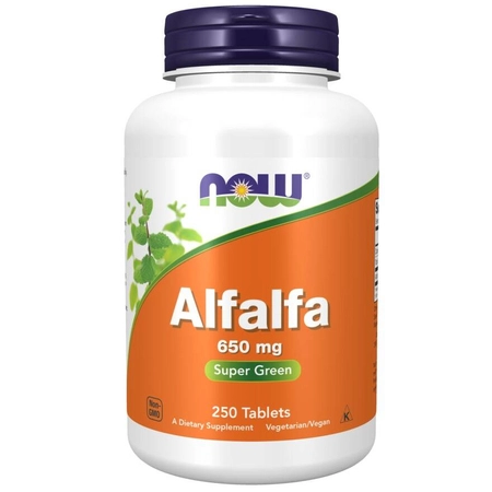 - Suplement diety NOW Foods Alfalfa 650 mg zawiera lucernę bogatą w witaminy, minerały i chlorofil. Wspiera trawienie, detoksykację organizmu i ogólną witalność. Idealny dla osób dbających o naturalne wsparcie zdrowia.