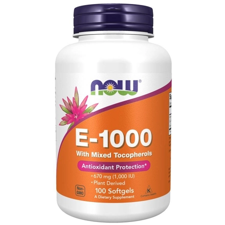 - Chroń komórki i wspieraj serce z NOW Foods Vitamin E-1000! Mieszanka tokoferoli to silna ochrona antyoksydacyjna i wsparcie odporności. Naturalna tarcza zdrowia!
